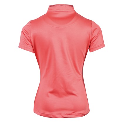 Shirt met korte mouw, opstaande kraag met korte ritssluiting en dubbele rij kristallen rondom de kraag, LouLou logo op de linkermouw.